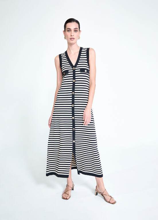 ABITO MAGLIA VISCOSA RIGATO CON BOTTONI