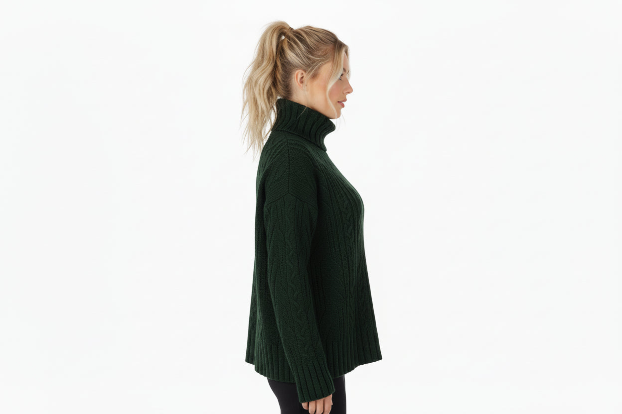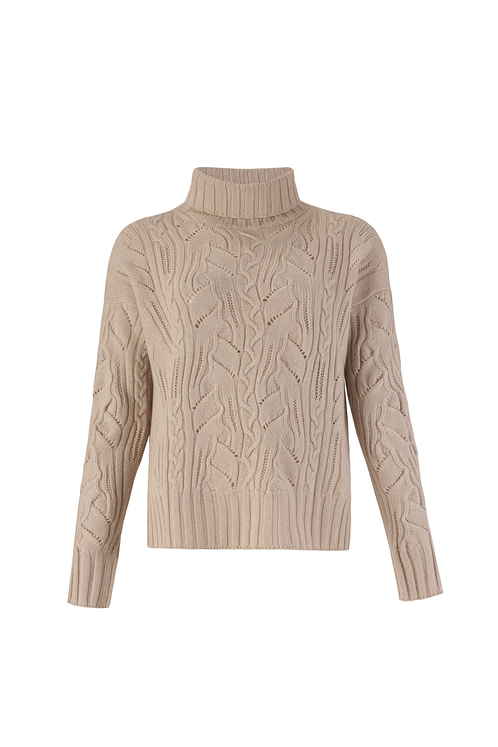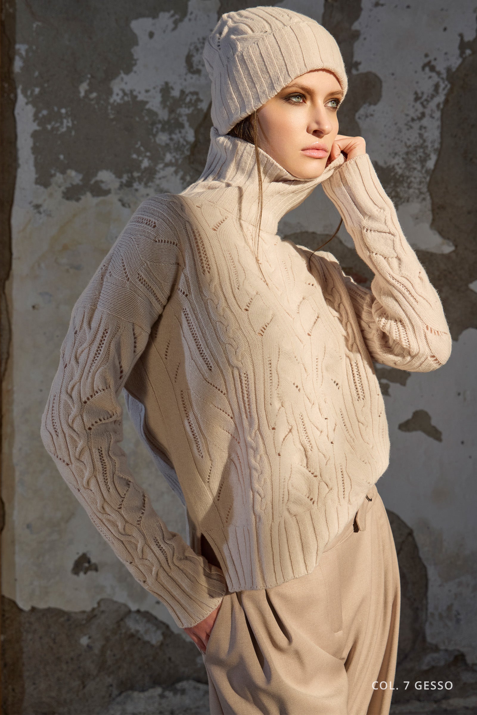 MAGLIA TRECCE LANA CACHEMIRE CON COLLO ALTO D-EXTERIOR