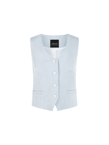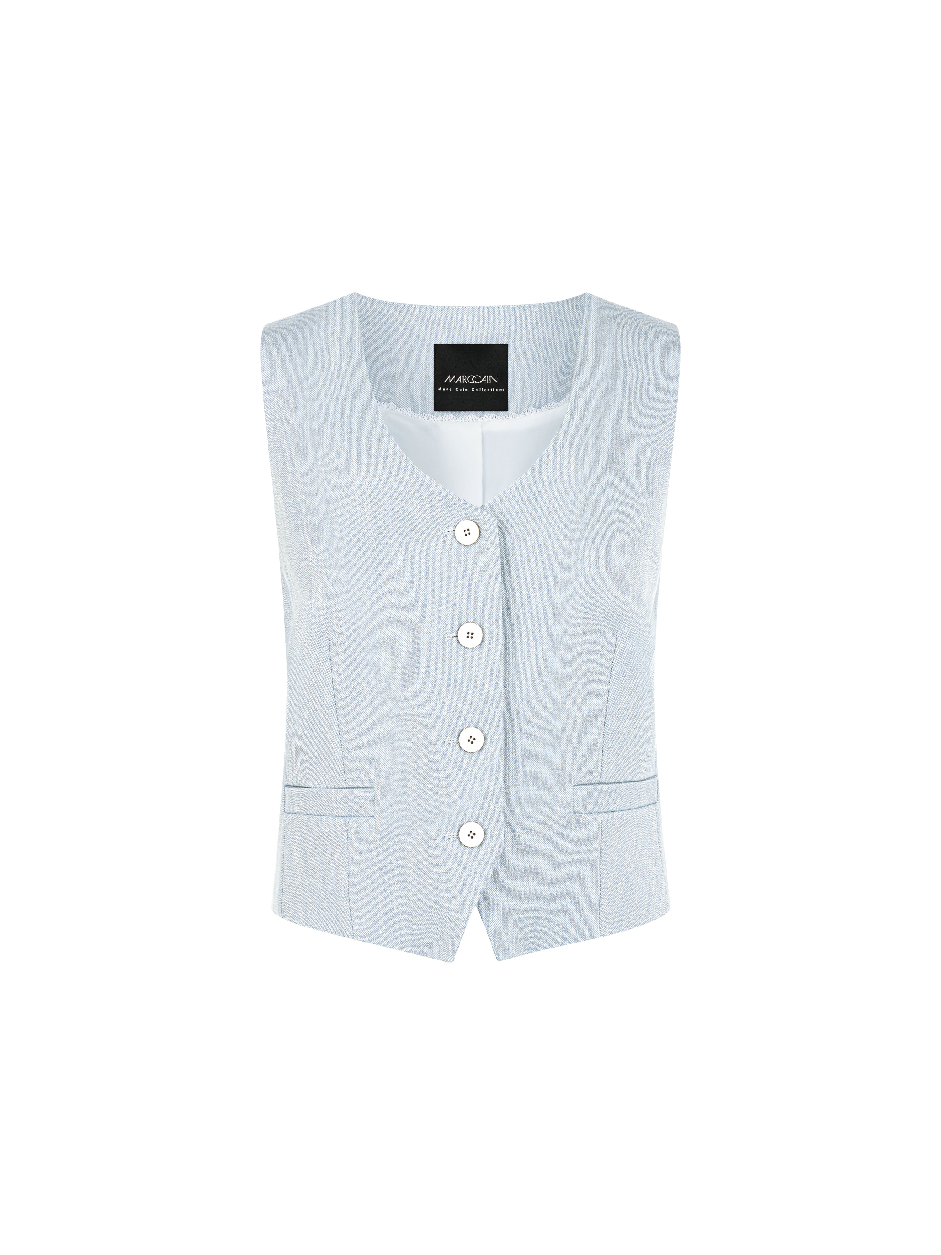 Discover refined sophistication with this elegant fitted waistcoat, expertly tailored to enhance your silhouette. Crafted with a slightly fitted cut and strategic darts, this piece delivers a polished aesthetic whether worn solo or layered beneath blazers and coats. The full lining ensures comfort and structure, while button fastening provides timeless appeal. Subtle faux welt pockets add understated detail, and the back slit allows effortless movement. Perfect for elevating professional wardrobes and creating versatile, curated looks with an air of understated elegance.
