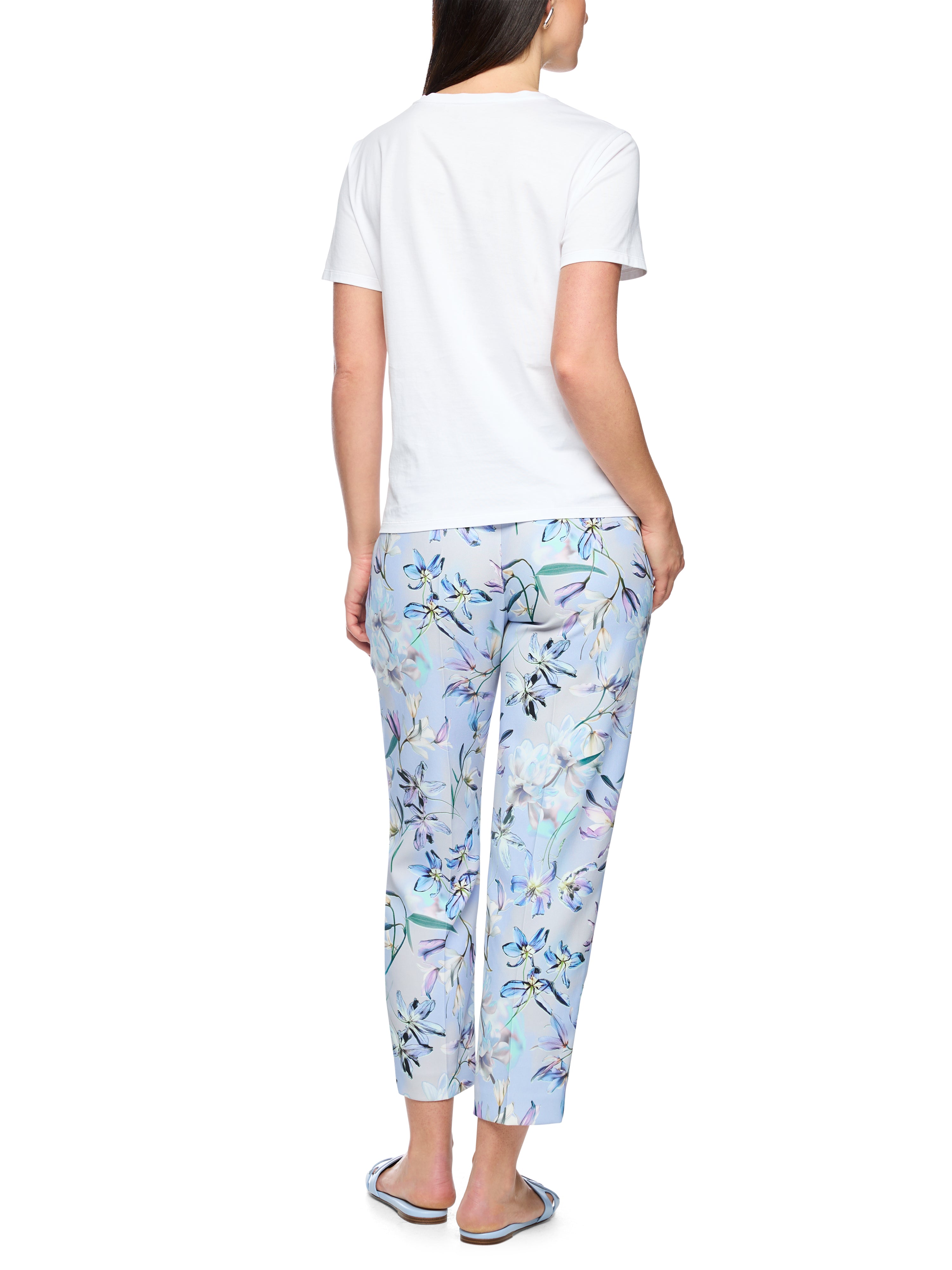 Questa T-shirt a maniche corte incarna l'eleganza sostenibile con il suo taglio dritto e il cotone biologico certificato. La stampa floreale sul petto, accompagnata dalla scritta 'Flowers', crea un dettaglio femminile raffinato, mentre gli hotfix sequin applicati con precisione aggiungono un tocco di brillantezza moderna. Realizzata dalla linea 'Rethink Together', questa maglietta combina consapevolezza ambientale e stile contemporaneo. Il collo rotondo e la morbidezza del tessuto garantiscono comfort durante tutto il giorno, perfetto per chi ricerca qualità e responsabilità etica nel proprio guardaroba.