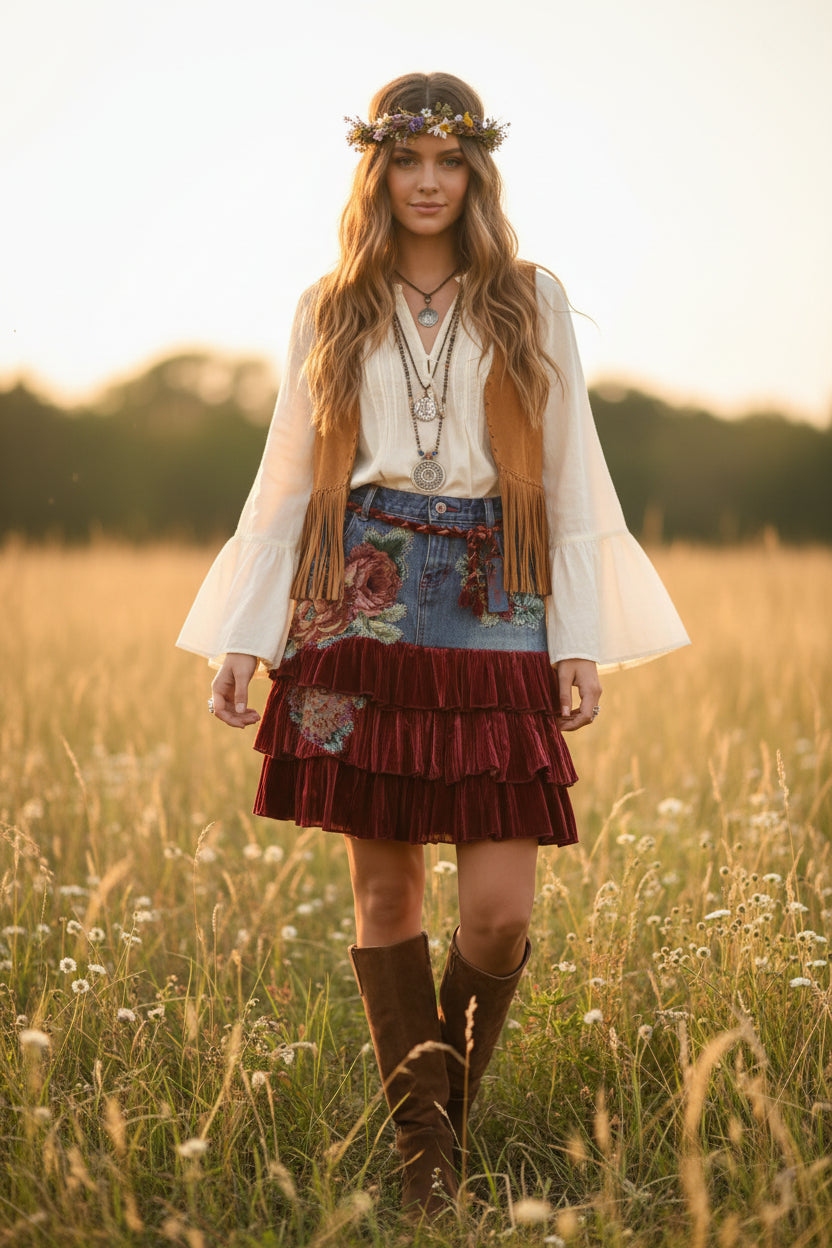 Gonna in denim di qualità superiore, arricchita da dettagli ricamati a rose e balze in velluto che conferiscono eleganza sofisticata. Il taglio corto la rende versatile per occasioni casual e semi-formali, mentre i materiali pregiati garantiscono comfort e durabilità nel tempo. Un capo che combina artigianalità e stile contemporaneo, perfetto per chi apprezza i dettagli curati e desidera distinguersi con una scelta consapevole.