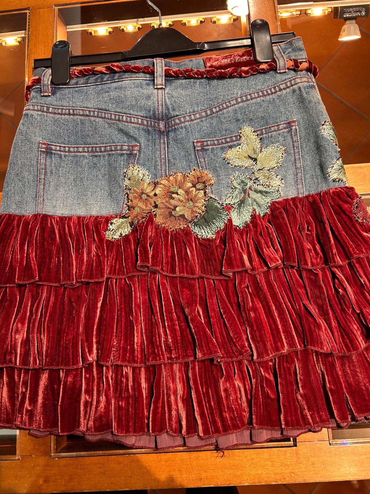 GONNA DENIM CON RICAMO E BALZE VELLUTO