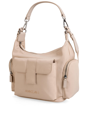 Scopri la NYLON BORSA TRACOLLA, una borsa hobo contemporanea realizzata in nylon riciclato che unisce sostenibilità e design pratico. Numerose tasche esterne mantengono i tuoi oggetti essenziali organizzati e accessibili, mentre una sicura chiusura con zip in metallo protegge gli oggetti di valore. Il versatile sistema di trasporto presenta sia un manico staccabile che una tracolla intrecciata con logo, permettendoti di passare senza problemi dalla modalità a mano a quella a tracolla. Con dimensioni di 32x18x29 cm, questo articolo progettato con cura offre un'eleganza funzionale per il consumatore consapevole.