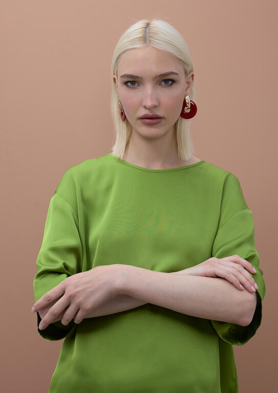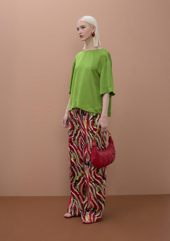 TOP MANICA CORTA GIROCOLLO CON RETRO BOTTONI MODELLO A SCATOLA Elegante top a manica corta con girocollo classico e dettagli costruttivi raffinati. La silhouette a scatola garantisce una vestibilità comoda e moderna, mentre i bottoni sul retro aggiungono un tocco di originalità al design. Perfetto per creare look versatili, dal casual al semi-formale. Realizzato con attenzione ai dettagli, questo capo rappresenta un'essenziale di qualità per la tua collezione estiva.