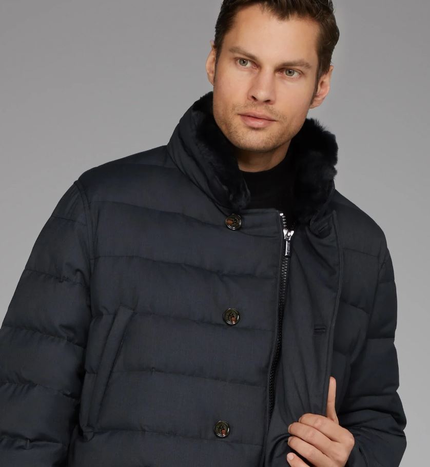 GIACCONE MICROPIUMA CON ESTERNO TECNO LANA IDROREPELLENTE Questo giaccone combina funzionalità e stile con una costruzione sofisticata. La doppia chiusura zip e i bottoni offrono versatilità di indosso, mentre l'imbottitura in micropiuma garantisce calore senza peso eccessivo. L'esterno in tecno lana idrorepellente protegge dall'umidità, mantenendo traspirabilità. Leggero e impermeabile, si adatta perfettamente a transizioni stagionali e attività quotidiane. Un capo elegante che unisce comfort sportivo e raffinatezza, ideale per l'autunno e l'inverno.